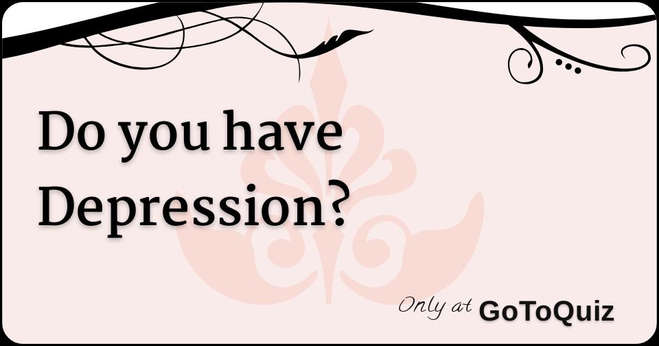 How long do you spend your time with your family? How do you know if you have major depression? Ever notice when someone seems 'off' — they don't return calls 2. Watch the video explanation about do you have depression (quiz) online, article, story, explanation, suggestion, youtube. This quiz is not meant to tell you if you have major depression. How should we talk to this person about it? We hope you are doing okay. Please select the closest answer if you feel the precise answer to a question is not available. Feeling kinda blue supportaugust 28th 2018 / 10:05:35 pm. What exactly causes depression?check out kati morton's channel ►►►►. Or are you just sad or confused?? There are many people suffering from depression and many of them would like to know if they have it or not so this quiz i made will help you find out! But if you are unsure whether you are depressed or just a normal down feeling, this depression test will answer the question: